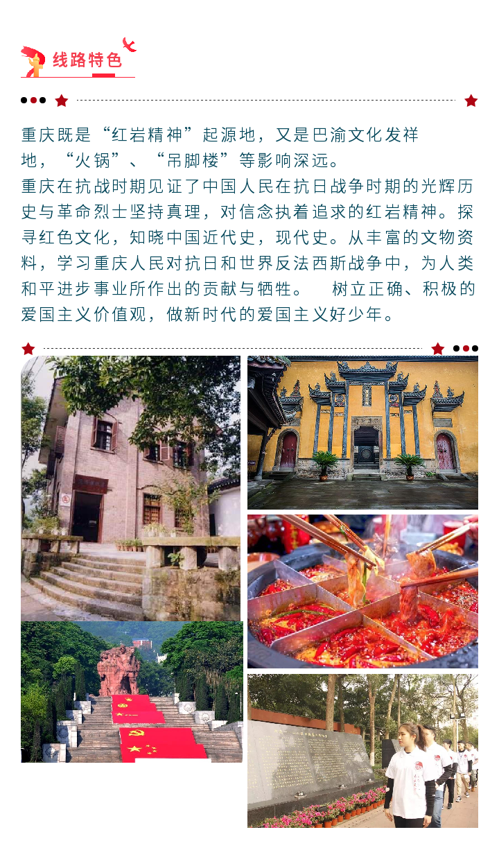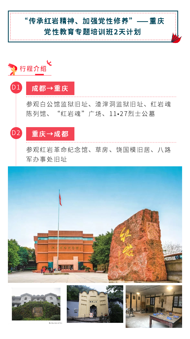 “传承红岩精神、加强党性修养” 重庆2天培训计划! 2021-01-11 13:30:34 上一篇: “红色培训+乡村振兴”战旗村1天培训计划! 下一篇: “追寻先辈足迹,弘扬民族精神”建川博物馆1天培训计划!